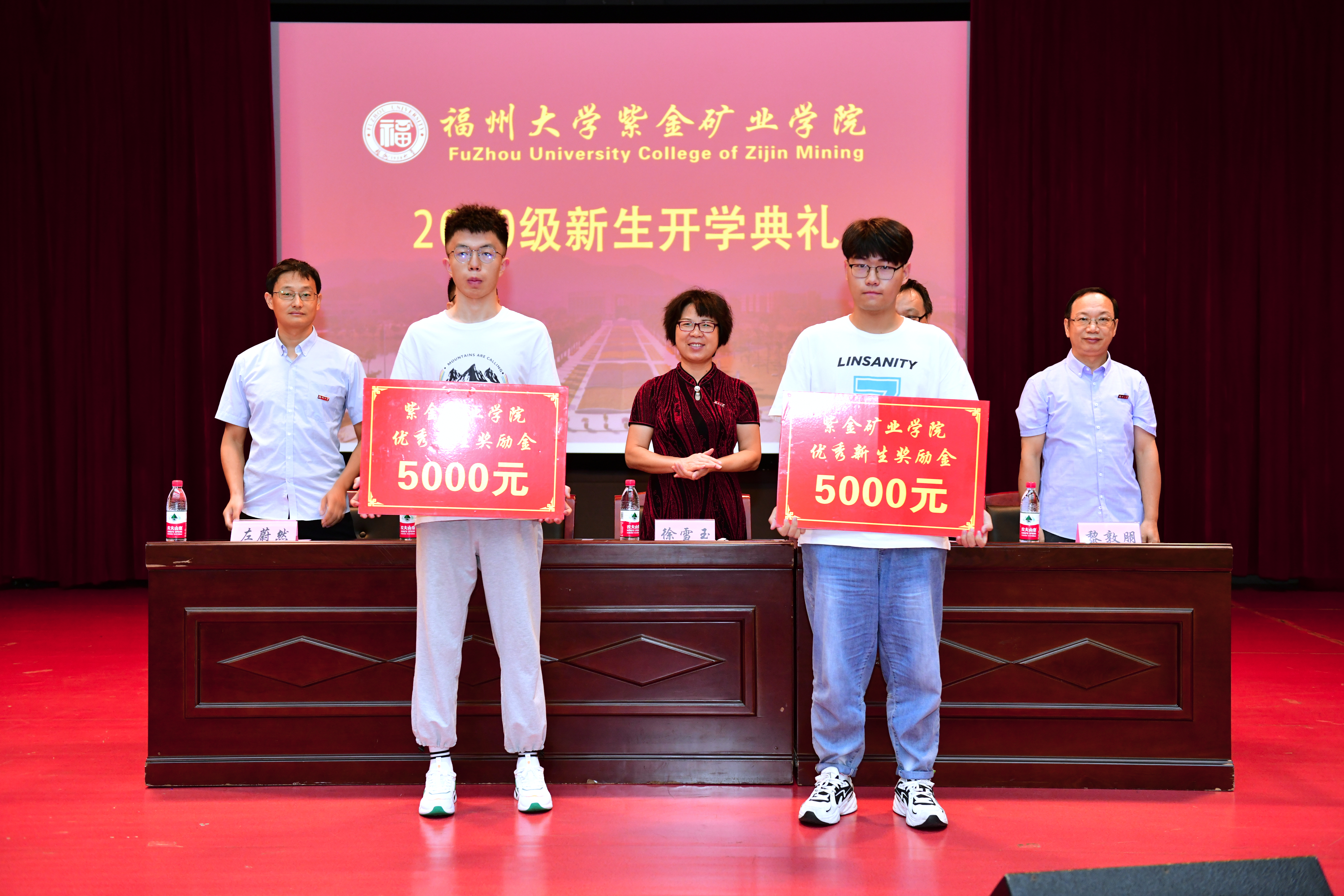在威武庄严的国歌声中,开学典礼拉开了帷幕。首先由黎敦朋副院长宣读“紫金矿业学院本科优秀新生奖励金”的获奖名单,并由主席台领导为获奖新生颁奖。