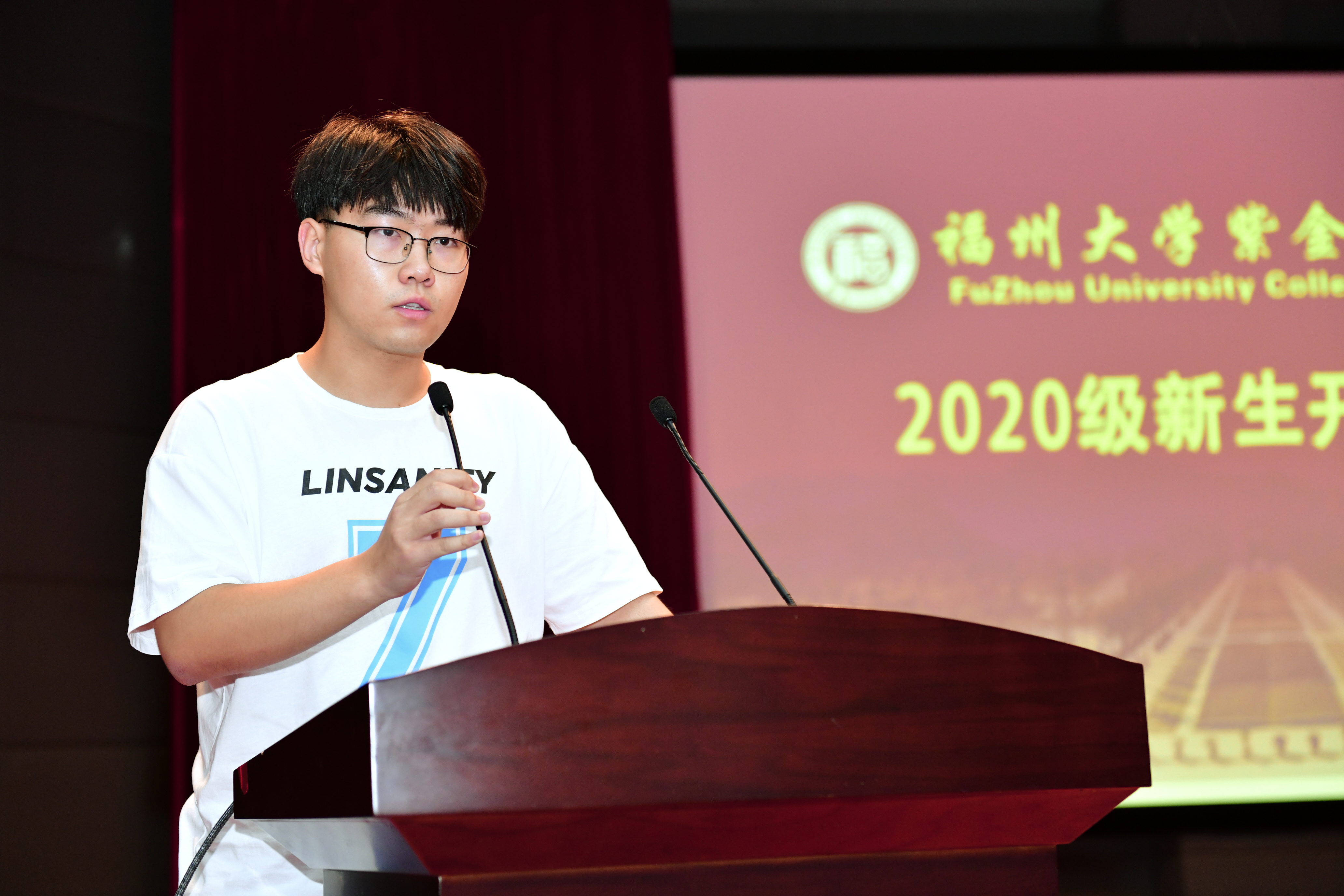 来自资源勘查工程二班的新生代表贾天硕同学上台发言。他提醒同学们:“学习是无止境的,在大学中我们更应该全面的发展自己,我们应该用专业知识来武装自己,用良好的人际关系来充实自己。同时也要确定自己的目标,并为之付出汗水,努力成为国家的栋梁。”学院团委学生会主席陈泽鑫同学发言:作为大学生,我们首先要学会独立,不仅仅是学会生活上的独立,而且要学会思维的独立,掌握一套属于自己的思考方式和逻辑能力。其次,我们还要还要脚踏实地,找准目标和方向,明白自己想要什么,并懂得如何去争取。最后还要持之以恒地努力学习,促使自己变成更好的人。