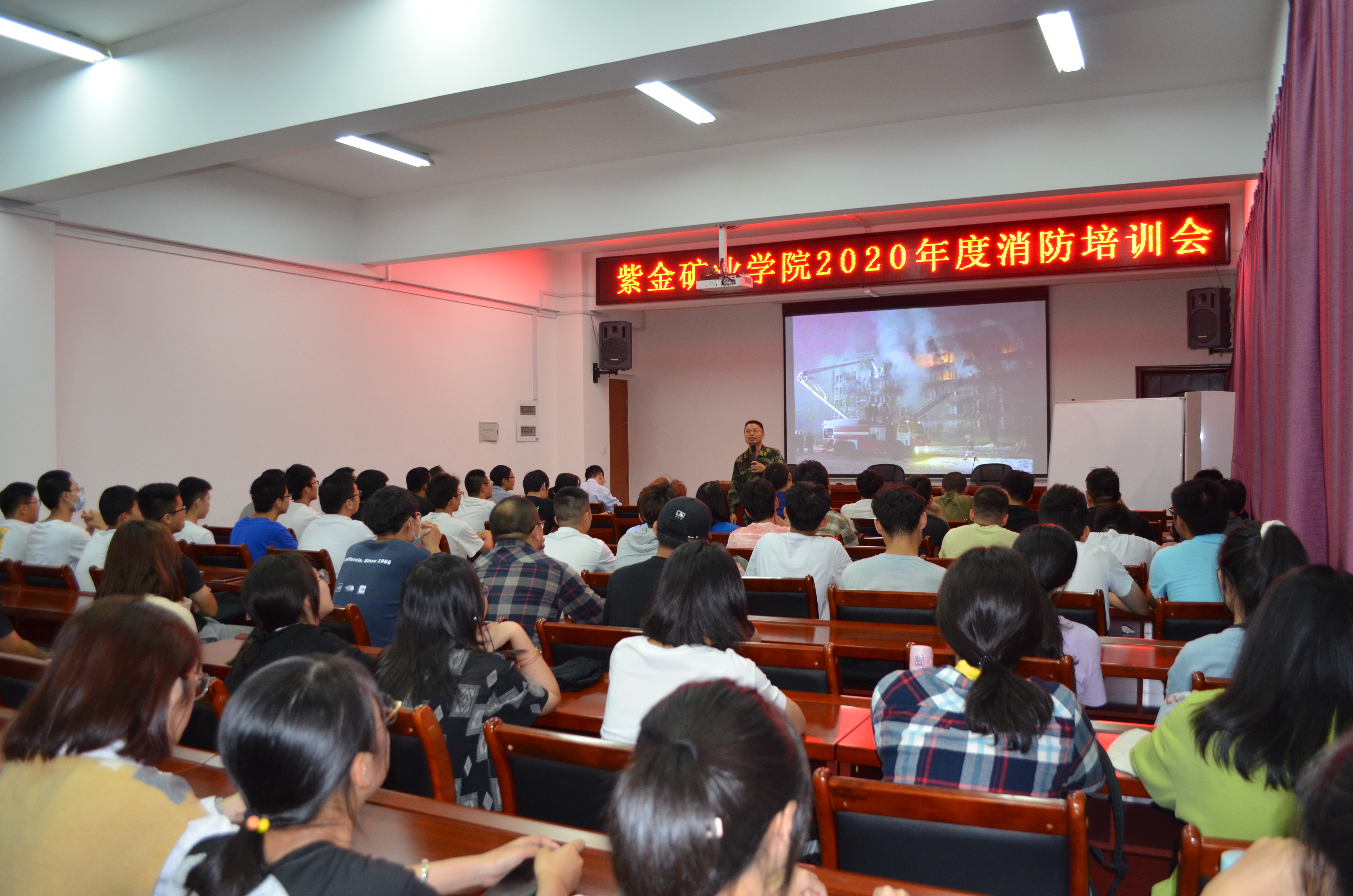 此次活动邀请了福建省公共消防安全职业培训学校资深讲师冯细全为师生上了一堂生动的大学校园消防知识讲座,冯细全以视频、图片及文字的形式向师生阐述了大学校园内火灾现场的逃生与自救、大学校园内教学楼、宿舍、食堂、图书馆、实验室等场所火灾的预防、大学校园内常用消防器材的使用方法等。